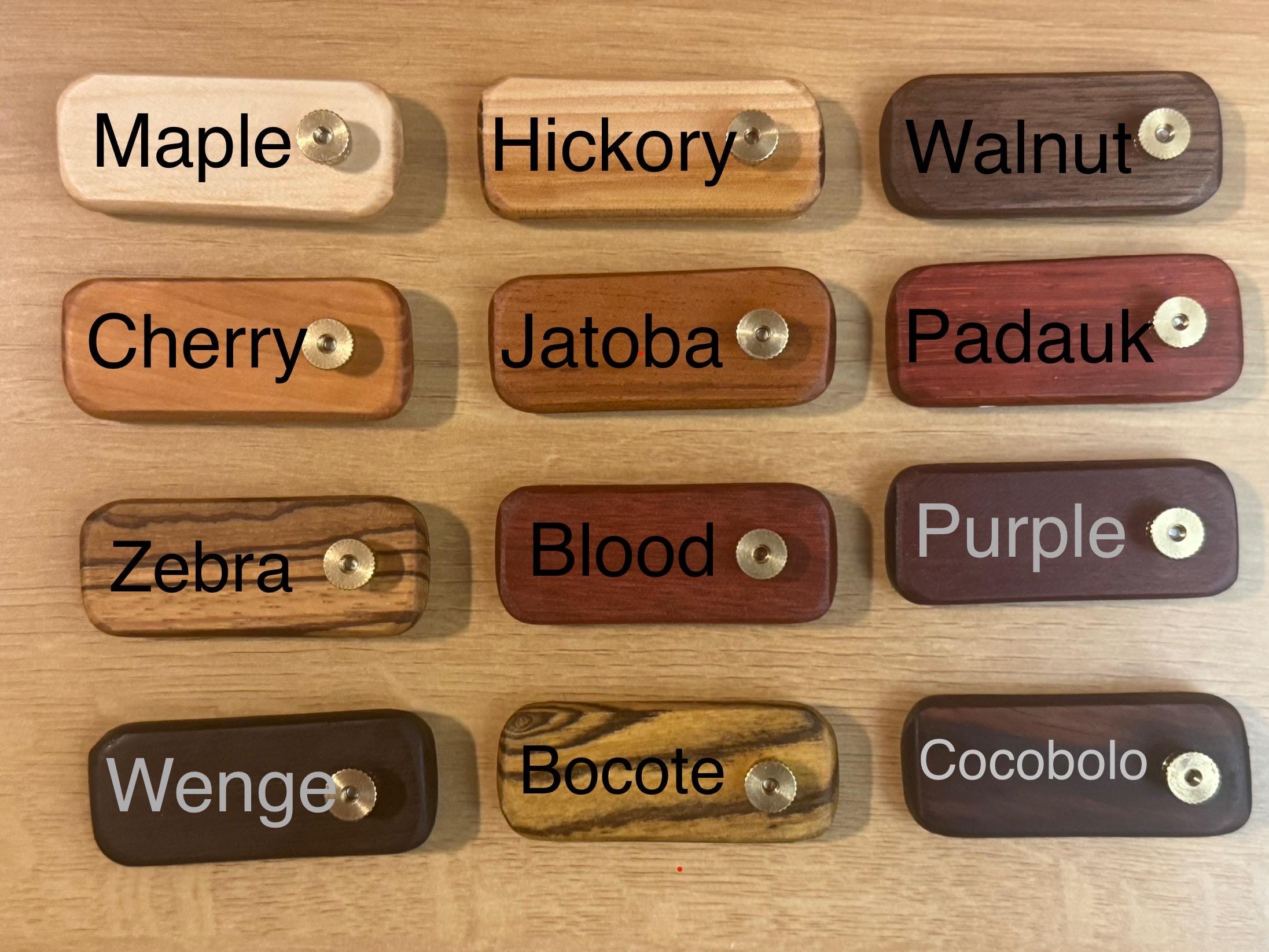 Available in a variety of hardwood species including Maple, Cherry, Hickory, Walnut, Brazilian Cherry(Jatoba), Purple Heart, Padauk, Zebrawood, Bocote, Bloodwood, Cocobolo, and Wenge. Prices vary based on species. Lames are finished with a beeswax polish(matte natural finish).
